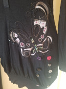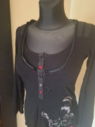 Nosený predĺžený top, čierny , zdobený gombičkami