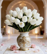 Až....9 ks....BIELYCH...TULIPANOV..výška...až...40cm..krásna jarná..Kytica.....)))