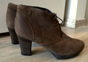 Štýlové hnedé kožené topánky, vhodné aj na prechodné obdobie, pohodlné, mäkká koža, výška opätka 7,5cm ...........