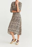 skvelé denné béžovo čierne viskozové šaty Mango
