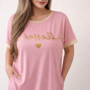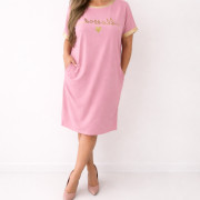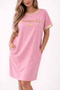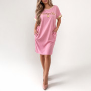 Dámske pohodlné šatičky ružovej farby, doplnené zlatou. Kvalitný elastický materiál. Srih voľnejší.