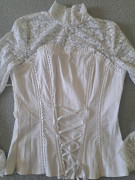 Damska bluzka ....korzet kombinovany s cipkou...nove ..vpredu ozdobne snurovanie zo stuhou na zvyraznenie postavy..elasticke...krasne a sexi ...rozmery dlzka 57cm....prdia v klude 2x 44cm