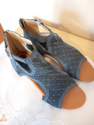 Predám tieto modré sandale. Sú nové, nesadla mi veľkosť. Dlžka - 28 cm, výška podrážky pod pätou 4 cm. Posielam na poštu.