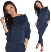 modrý elastický overal s gumičkou v páse a vreckami