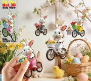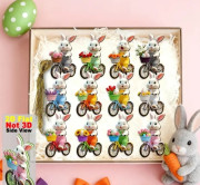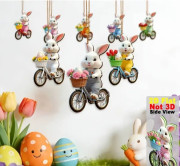 Veľkonočne závesné dekoracie 2D ***Zajac na bicykli ***12 ks***