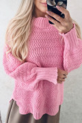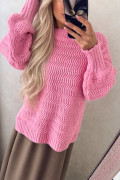Damsky pleteny pulover krasnej ružovej cukrikovej farby,talianakej značky. Voľny strih, veľkosťou sadne od S-XL