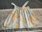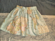 originálna minisukňa, látka s potlačou mapy sveta. široká, strih do Ačka. zapínanie na zips a viazanie.