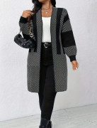 Hrubší  dlhy,teply  kardigan čierno biela kombinácia  **3XL***UNI PRE MOLETKU