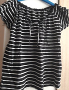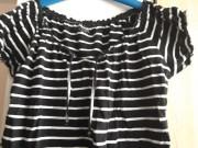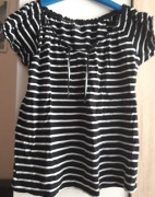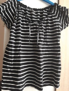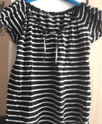 Dámsky top s voľným strihom a s krátkym rukávom vhodný aj na bežné nosenie. Farba: Čierna kombinovaná s bielou. Veľkosť: XXL, rozmery: dlžka: 62 cm. obvod: do 114 cm. Zloženie látky: 100 % bavlna. Sedí pekne, nosí sa dobre, veľmi príjemný a vzdušný pocit pre pokožku.