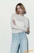 Džínsy z mierne elastického bavlneného denimu pre dobré pohodlie. Široký klasický strih od pása k bokom a široký strih od stehien k spodnému okraju. Vysoký pás so zapínaním na zips a gombík, našité vrecká vpredu aj vzadu a puky vpredu aj vzadu. Štandardná dĺžka. Navrhnuté tak, aby siahali až po priehlavok, s jemným alebo žiadnym nazberaním. Vždy sa hodia, nech ich už skombinujete akokoľvek.