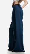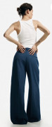 Elegantní kalhoty z měkkého kepru. Mají vysoký pas a poklopec na zip se skrytým knoflíkem a zapínáním na háček. Vpředu i vzadu jedna falešná výpustková kapsa. Široké nohavice s předními i zadními puk
