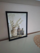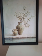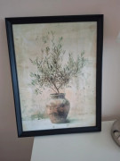 Nové, moderné rustikálne umenie, obraz na plátne s motívom olivovej vetvičky, obraz vsadený do dreveného rámu čiernej farby so sklom, rozmery 43x33 cm