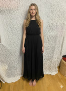 hodvábny čierny satén, podšité v páse strihané. 1x nosené a vyčistené